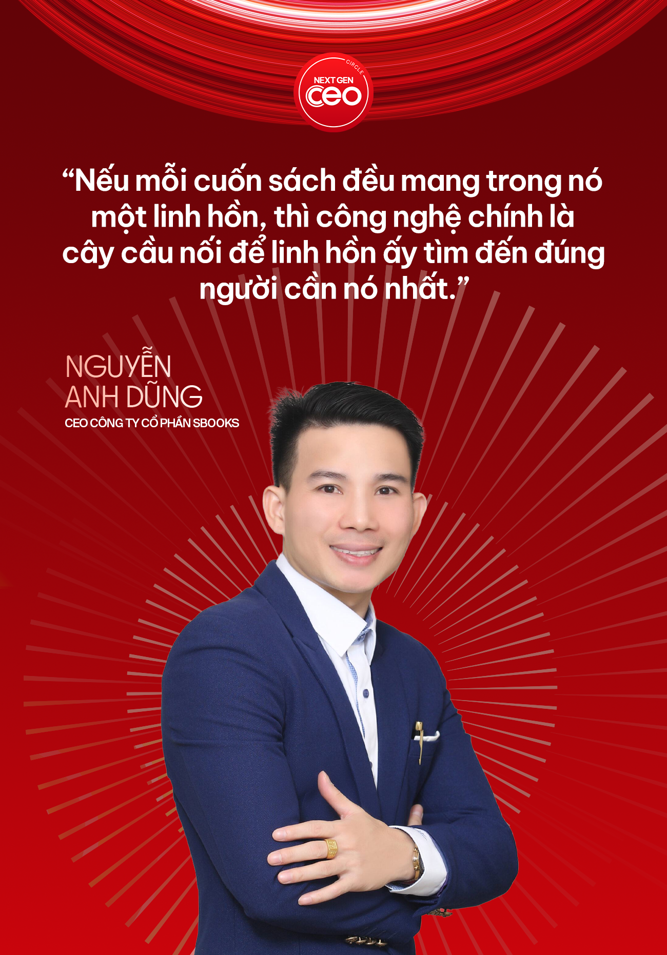 Nhà sáng lập SBOOKS nói rằng: “Nếu mỗi cuốn sách đều mang trong nó một linh hồn, thì công nghệ chính là cây cầu nối để linh hồn ấy tìm đến đúng người cần nó nhất”.