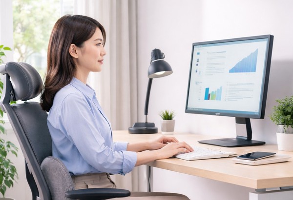 Ngồi làm việc với tư thế đúng để bảo vệ và ngăn ngừa thoái hóa cột sống. (Ảnh minh họa)